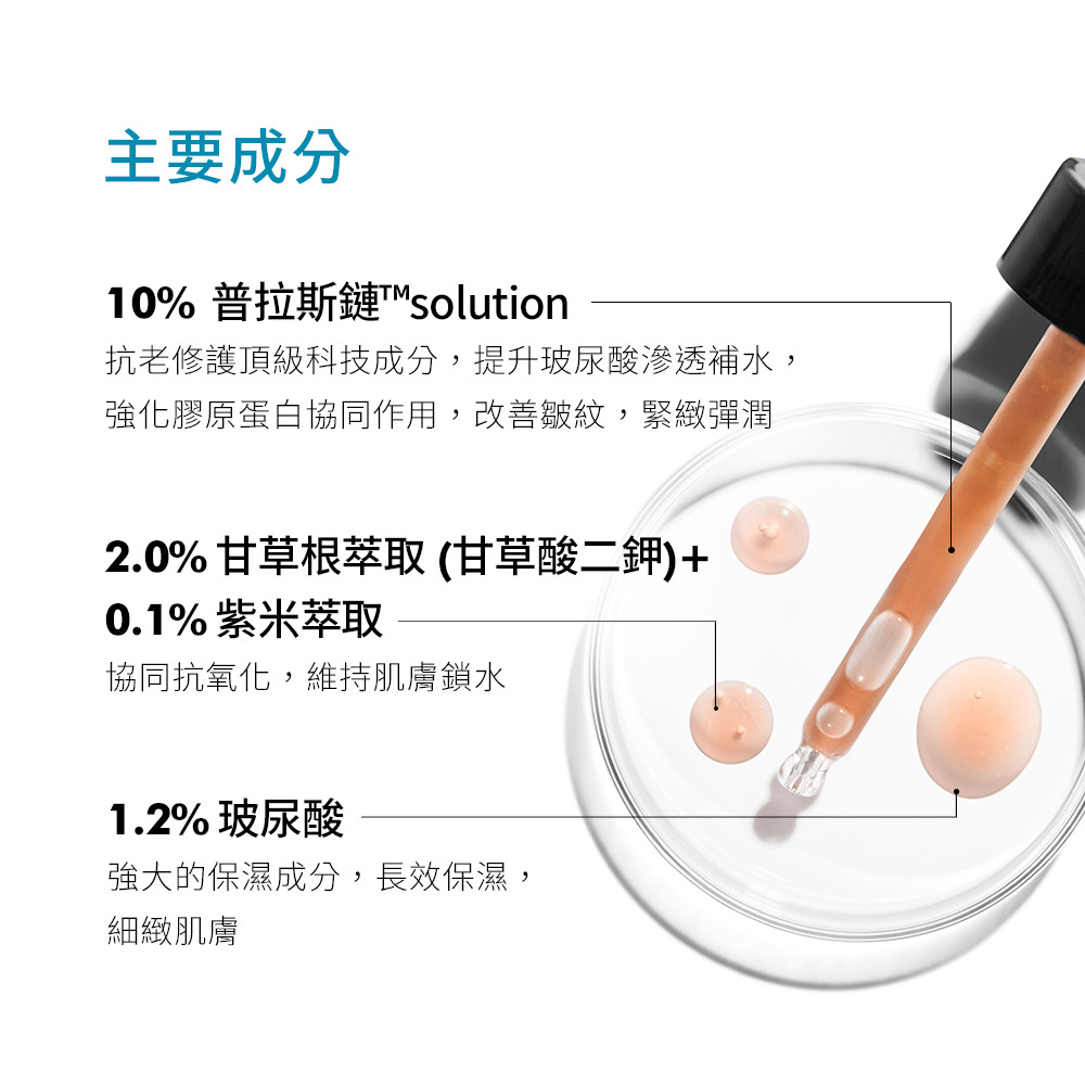 ◆專利抗老成分普拉斯鏈,肌膚彈潤,緊緻抗皺