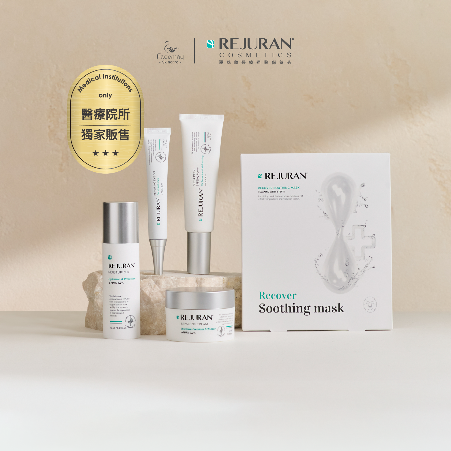 肌底喚膚輕潤乳液40ml+肌底喚膚眼部精華凝膠15ml+肌底喚膚修護乳霜50ml+防曬精華乳SPF50+/ PA+++高防曬係數50ml+肌底喚膚修護面膜1盒5片