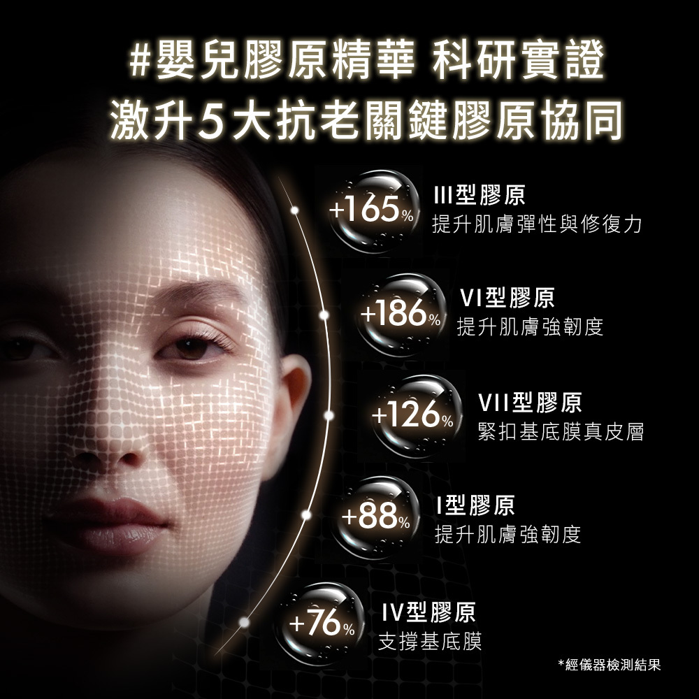 ◆添加高濃度普拉斯鏈抗老修護頂級科技成分,強化膠原蛋白協同作用,高效改善皺紋